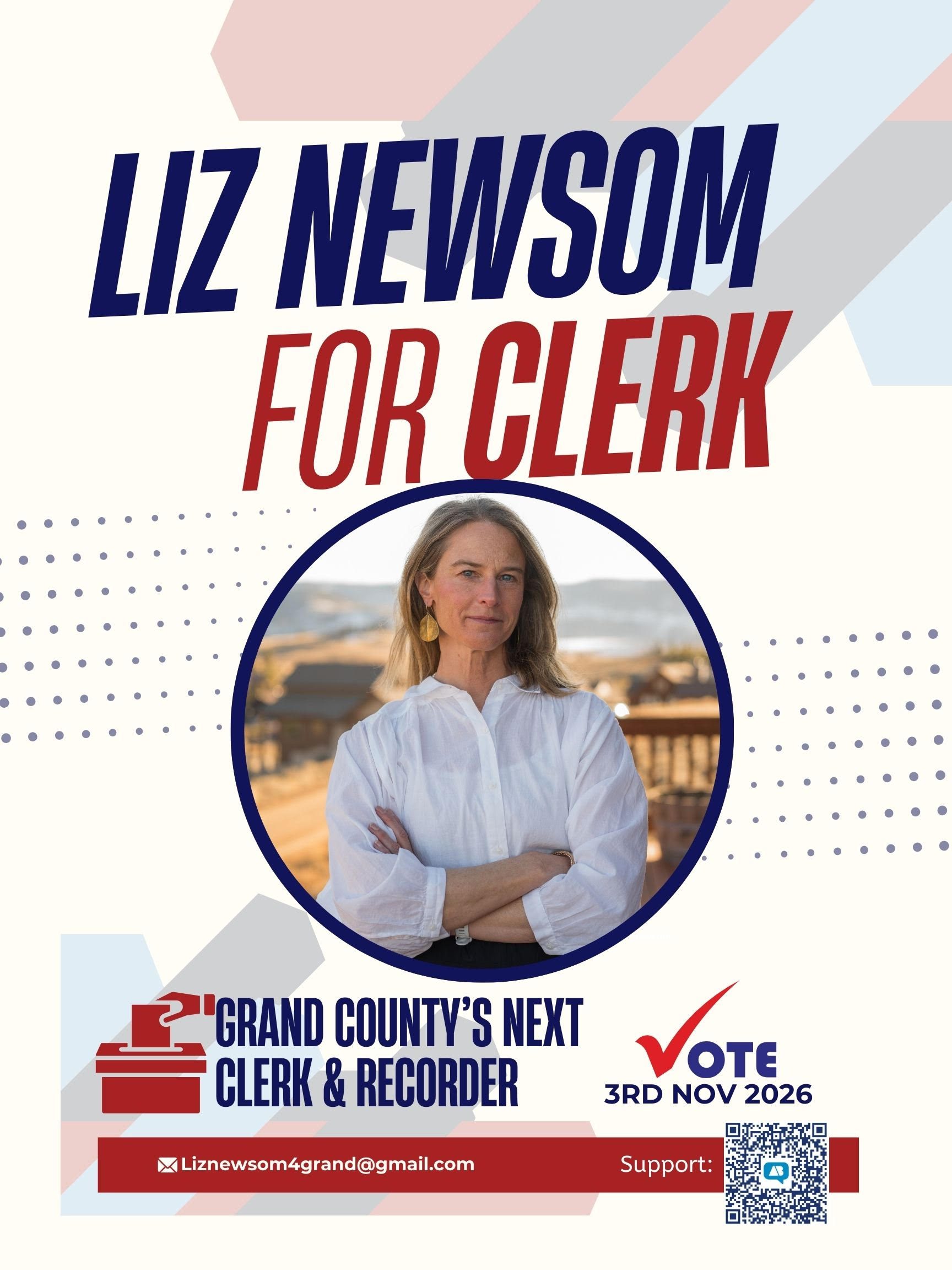 My name is Liz Newsom, and I’m running for Grand County Clerk and Recorder.